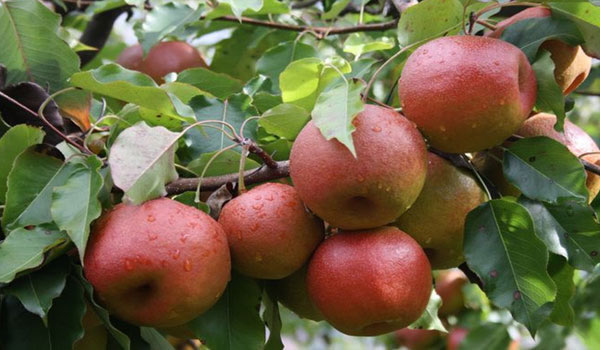 巍山红雪梨主要种植于和平镇大德村委会。当地俗称“冬雪梨”。 该品种具有适应性广,树势强健,抗逆性强等特性。成熟期在十月下旬至十一月上旬,耐贮藏,果实规整,果个大(300—400克),色泽艳丽,适口性好(甜脆、含水多),盛果期单株产量100—150千克,亩产可达3000千克以上。 曾以鲜、美、...