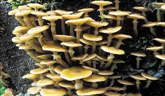 野生食用菌,云南广有分布。多生长在针叶树及壳斗科等阔叶树干基部、根部和倒木上,能引起活立木的银朽病。菌盖肉质,蜂蜜黄色至浅黄色,有平伏和直立的小鳞片,边缘有条纹。菌柄色同菌盖,菌环白色,在柄的上部。新鲜的菌丝体有荧光,在黑暗条件下可见淡蓝色光亮。营养丰富,是著名...
