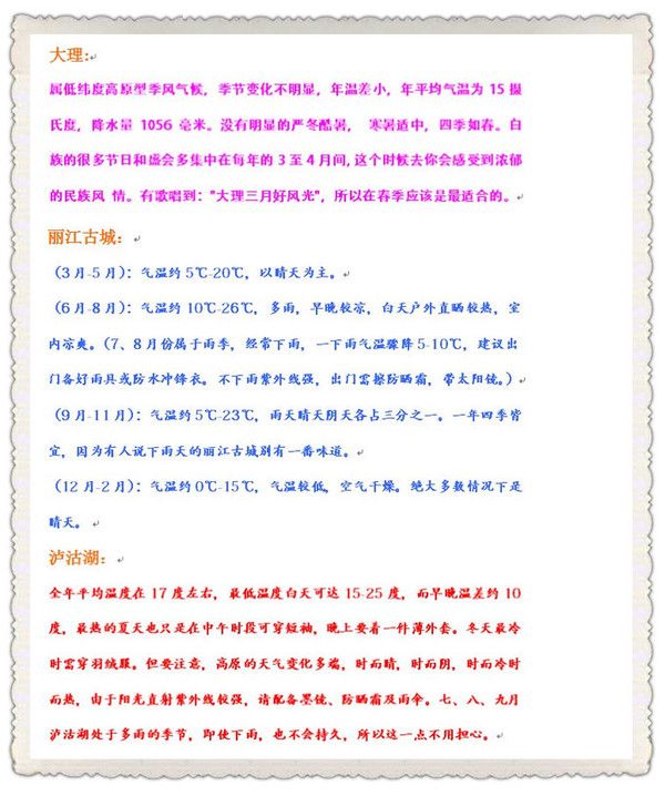 云南旅游的雨季一般集中在5-10月,如果仅从气候方面考虑,云南最佳旅游时间10月至来年。----------------------------------------------------------------------------------------------------------------------