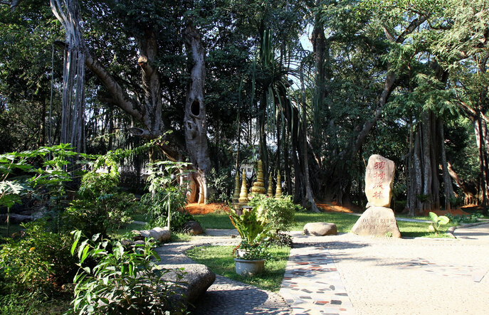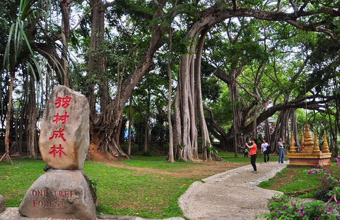 独树成林位于打洛镇边境贸易区内的曼掌寨子旁,距离打洛镇政府以南3.5公里,靠近中缅边境的地方。这是一棵古榕树,有900多年的树龄,共有31个根立于地面,树高70多米,树幅面积120平方米,枝叶既像一道篱笆,又像一道绿色的屏障,成为热带雨林中的一大奇观,打破了“单丝不成线,独树不成林”的俗语。