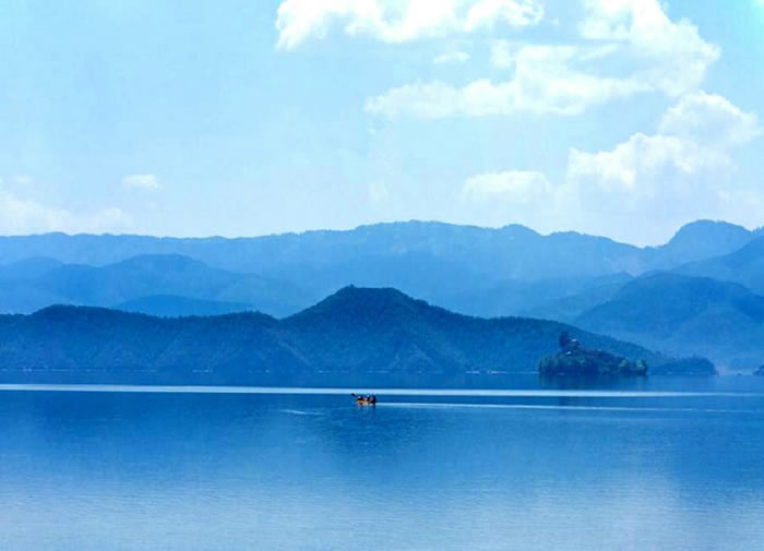 美丽而迷人的泸沽湖素有“高原明珠”之称。湖的水域面积达58平方公里,海拔2690米,平均水深45米,最深处90余米,透明度高达ll米。中有五个全岛、三个 半岛和一个海堤连岛。湖中各岛婷婷玉立,形态各异,林木葱郁,翠绿如画,身临其间,水天一色,清澈如镜,藻花点缀其间,缓缓滑行于碧波之上的猪槽船和徐徐飘浮干水天之间的靡梭民歌,使其更增添几分古朴、几分宁静,是一个远离嚣市,未被污染的处女湖。