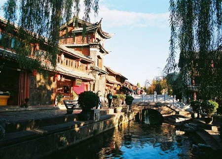 丽江古城即是以四方街发起来的,形成以四方街为中心,四周店铺客栈环绕,沿街逐层外延的稠密而又开放的格局,古老的集市就这样孕育了城市最初的形状,这与中国传统的四四方方的井字形街道是不是一样的。这里四周青山,坝内碧野,泉水萦回,形同碧玉大砚,故命名“大研古城”。