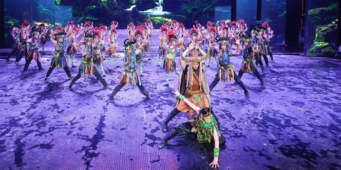 全剧综合了舞蹈、杂技、武打、舞台机械、全景特技、装置艺术等元素,通过高空反重力走月亮、大鹏神鸟救祖、高空撞门杠、水雷、洪水、瀑布、雨帘栈道、大型雪山机械模型等上万套高科技机械与原生态艺术相结合,勾勒出一部充满着灵与肉、血与泪、生与死、情与爱的文化传奇。