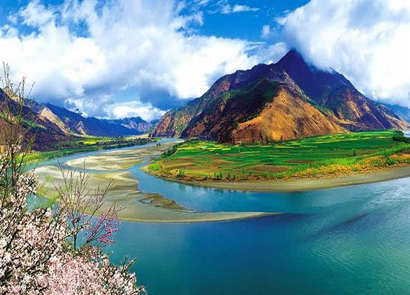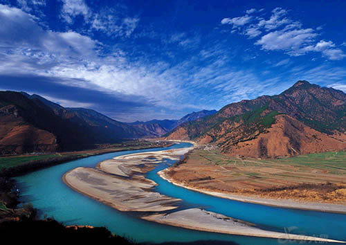 江第一湾位于云南省西北部的丽江市石鼓镇与香格里拉县南部沙松碧村之间,海拔1850米,距香格里拉县城130公里,有公路直达。万里长江从“世界屋脊”——青藏高原奔腾而下,巴塘县城境内进入云南,与澜沧江、怒江一起在横断山脉的高山深谷中穿行形成了“三江并流”的壮丽景观。到了香格里拉县的沙松碧村,突然来了个100多度的急转弯,转向东北,形成了罕见的"V"字形大弯,“江流到此成逆转,奔入中原壮大观”,人们称这天下奇观为“长江第一湾”。