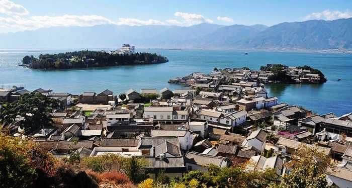 站在玉玑岛上,远眺苍山十九峰,近观岛曲秀丽 景色,俯视洱海碧水清波,一幅壮美秀丽的自然美景尽收眼底,实在令人心旷神怡。