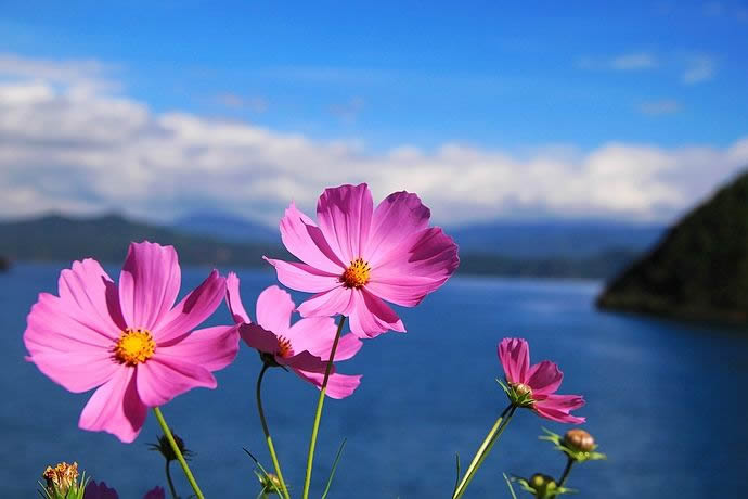 在下午2点半左右到达泸沽湖观景台,欣赏风景如画的泸沽湖全景,乘【猪槽船】游览泸沽湖,登【里务比岛】,观【里务比寺】,